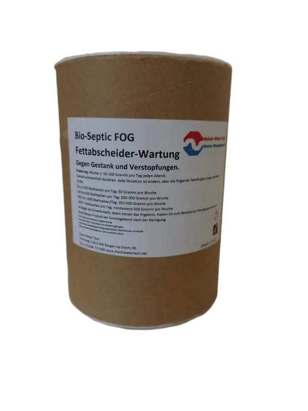 Dieses hochwirksame, biologische Produkt bekämpft Gerüche und kann die Entleerung des Fettabscheiders verzögern und erleichtern. Es funktioniert auf der Basis von (nicht-pathogenen) Mikroorganismen, die sich geruchsneutral von Lebensmittelresten und Fetten ernähren. Durch die wöchentliche Behandlung über verschiedene Abflüsse werden auch hier Gerüche und Verstopfungen beseitigt.