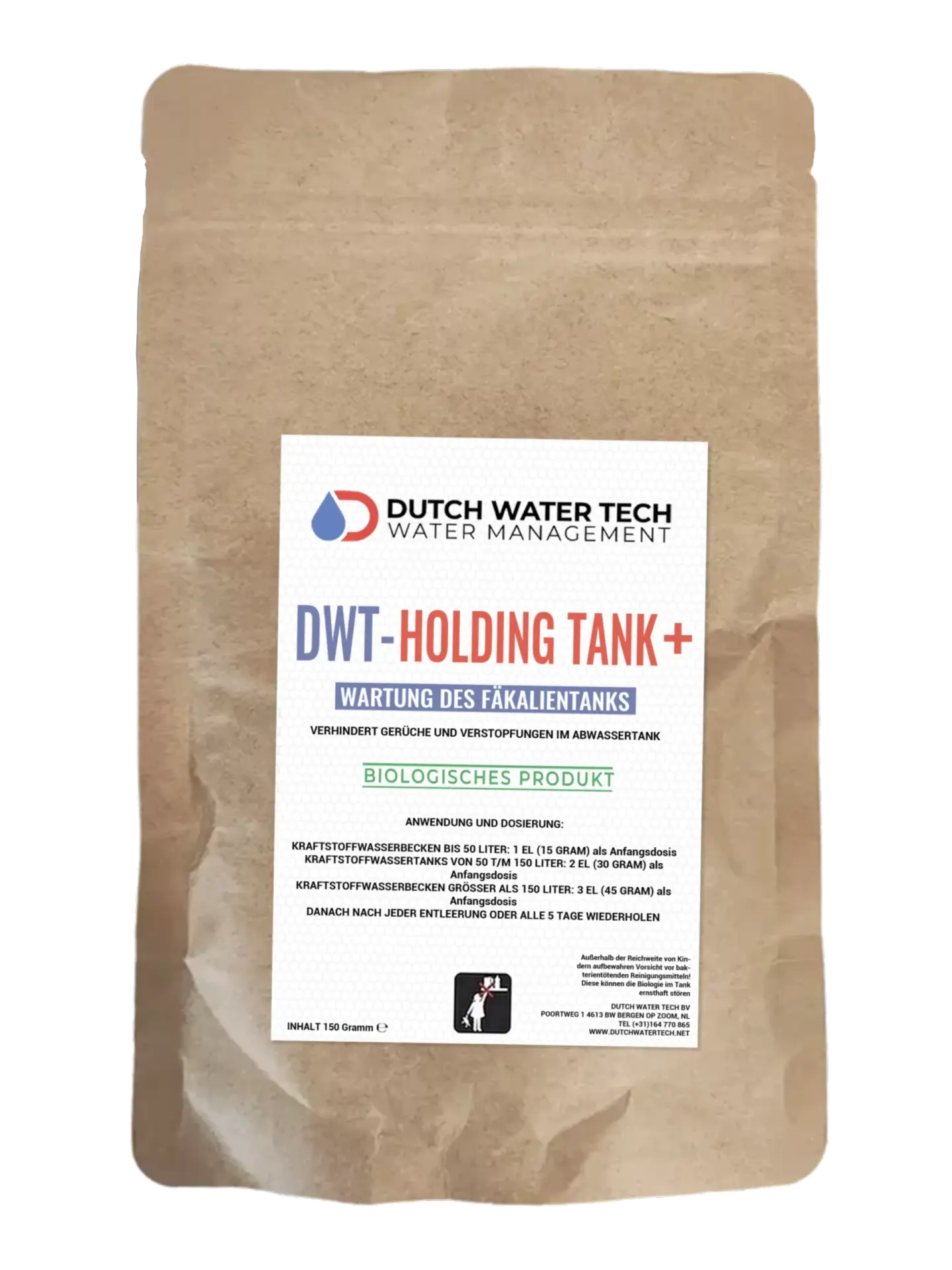 DWT Holding Tank + ist ein hochwirksames, biologisches Produkt in einer völlig plastikfreien Verpackung. Dieses Produkt enthält nicht-pathogene Bakterien und Mikroorganismen. Dadurch wird organisches Material im Fäkalientank abgebaut, und zwar auf eine Weise, die keine Gerüche freisetzt. So wird stinkendes Regenwasser verhindert.