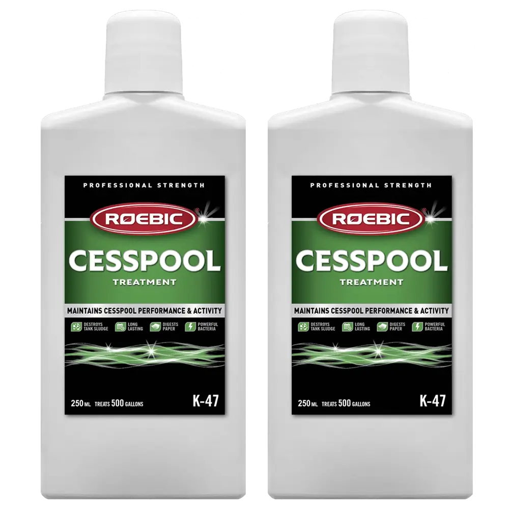 Der Sickergrube Starterskit besteht aus 2 Flaschen Roebic K47 Sickergrube Wartung und ist ausreichend für eine Sickergrube mit einem Fassungsvermögen von bis zu 3000 Liter.